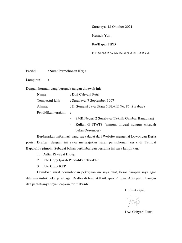 Contoh Surat Permohonan Kerja Kosong Mudah Dan Terbaik